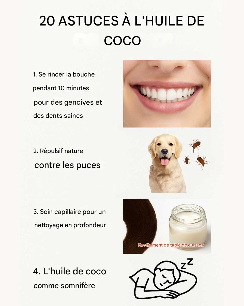 L’huile de coco est devenue un incontournable dans de nombreux foyers grâce à sa polyvalence et à ses multiples applications. De la cuisine à la salle de bain, cette huile naturelle offre d’innombrables possibilités d’utilisation, ce qui en fait un incontournable pour tous ceux qui cherchent à se simplifier la vie grâce à des alternatives naturelles. Que vous cherchiez à améliorer votre santé, à optimiser votre routine beauté ou à vous attaquer aux tâches ménagères, l’huile de coco offre la solution. Cet article explore 20 astuces qui démontrent l’incroyable polyvalence de l’huile de coco.