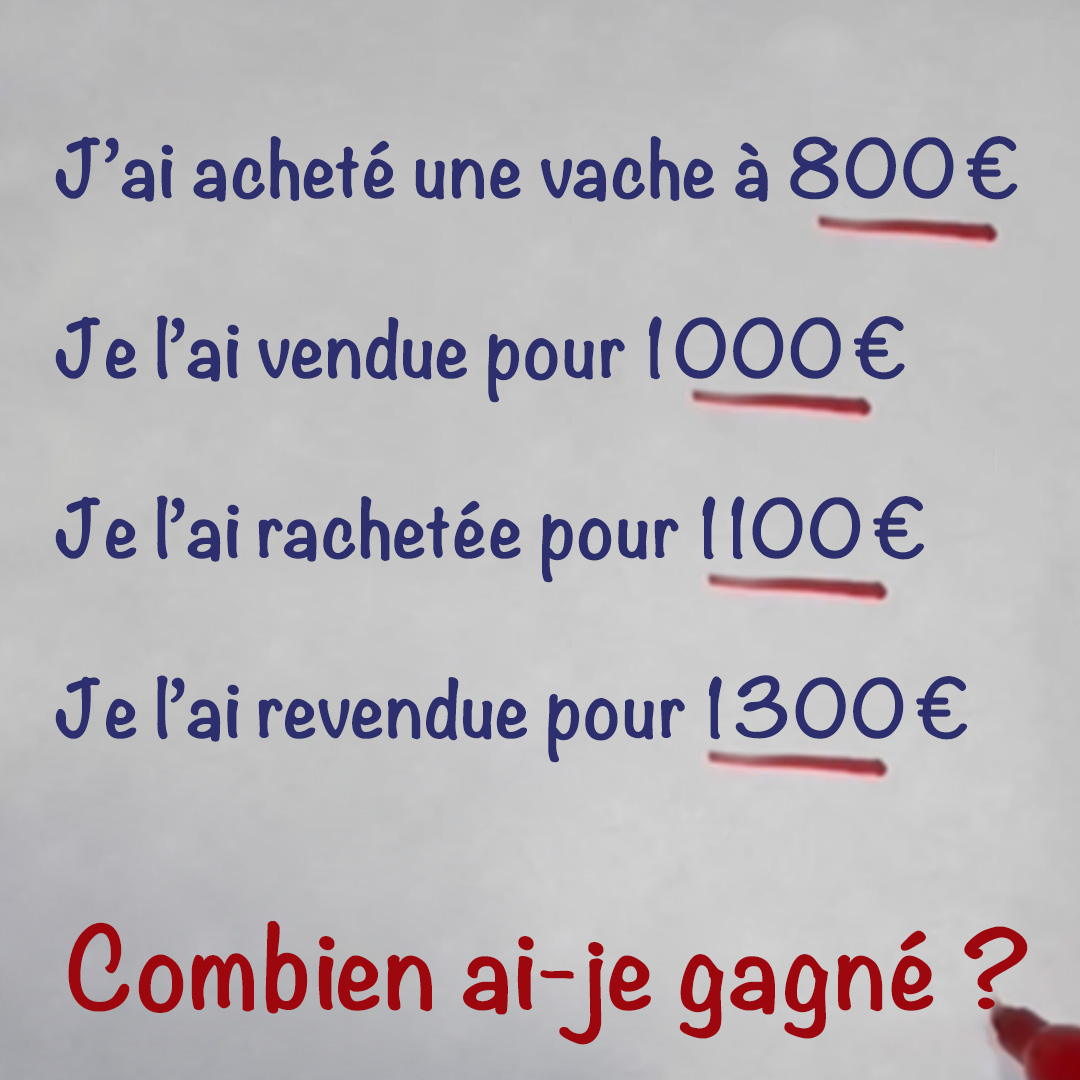 L’énigme de la vache : combien ai-je gagné au final ?